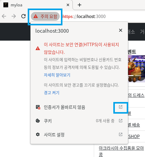 해결 : react 에 SSL 적용 ( 아직 nginx 적용전이라 react start script에 적용 )