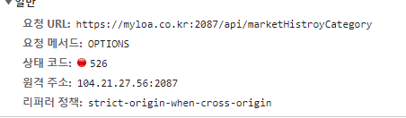 이슈 내용 : api 서버의 cors 설정을 완료하였지만, CORS 에러와 함께 api 서버에서 526 에러코드가 전달됨.